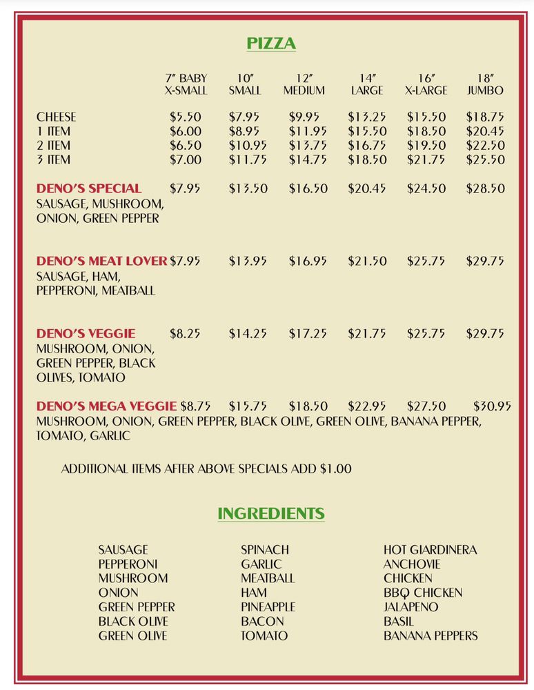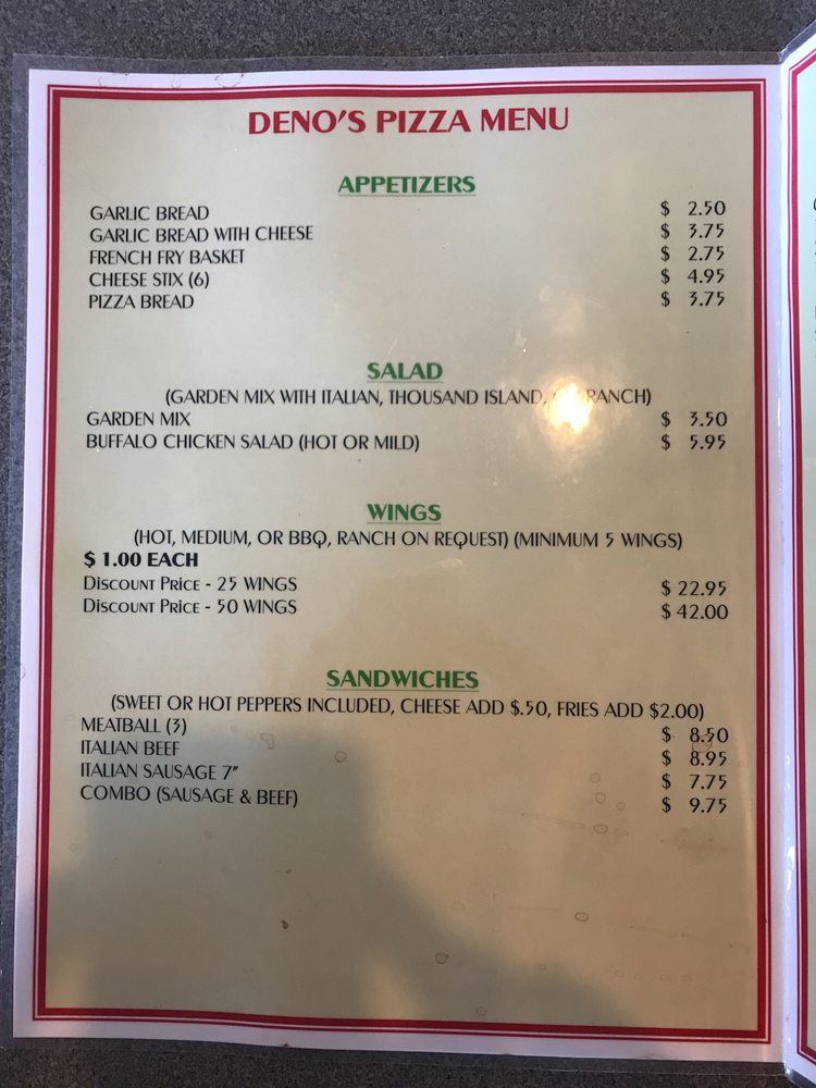 Deno's Pizza in Surprise, AZ offers a variety of delicious options including pizza, chicken wings, and sandwiches. With a diverse menu that caters to vegetarians and accepts various payment methods including cryptocurrency, the restaurant provides a casual and comfortable dining experience with options for delivery and takeout. From appetizers like cheese stix and garlic bread to main dishes like wings and salads, Deno's Pizza strives to satisfy every craving. Customers praise the flavorful toppings, crispy crust, and excellent service, making it a must-try spot for pizza lovers. Whether you're looking for a quick lunch, a group gathering, or a quiet dinner, Deno's Pizza has something for everyone. Experience the true taste of Chicago-style tavern pizza at Deno's and enjoy a satisfying meal in a welcoming atmosphere.